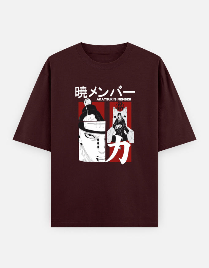 Accented in crimson red with bold Japanese lettering for "Akatsuki Member" (暁メンバー) and the kanji 力 (Chikara – “Power”), this design is a statement for those who respect strength, intellect, and control from the shadows.